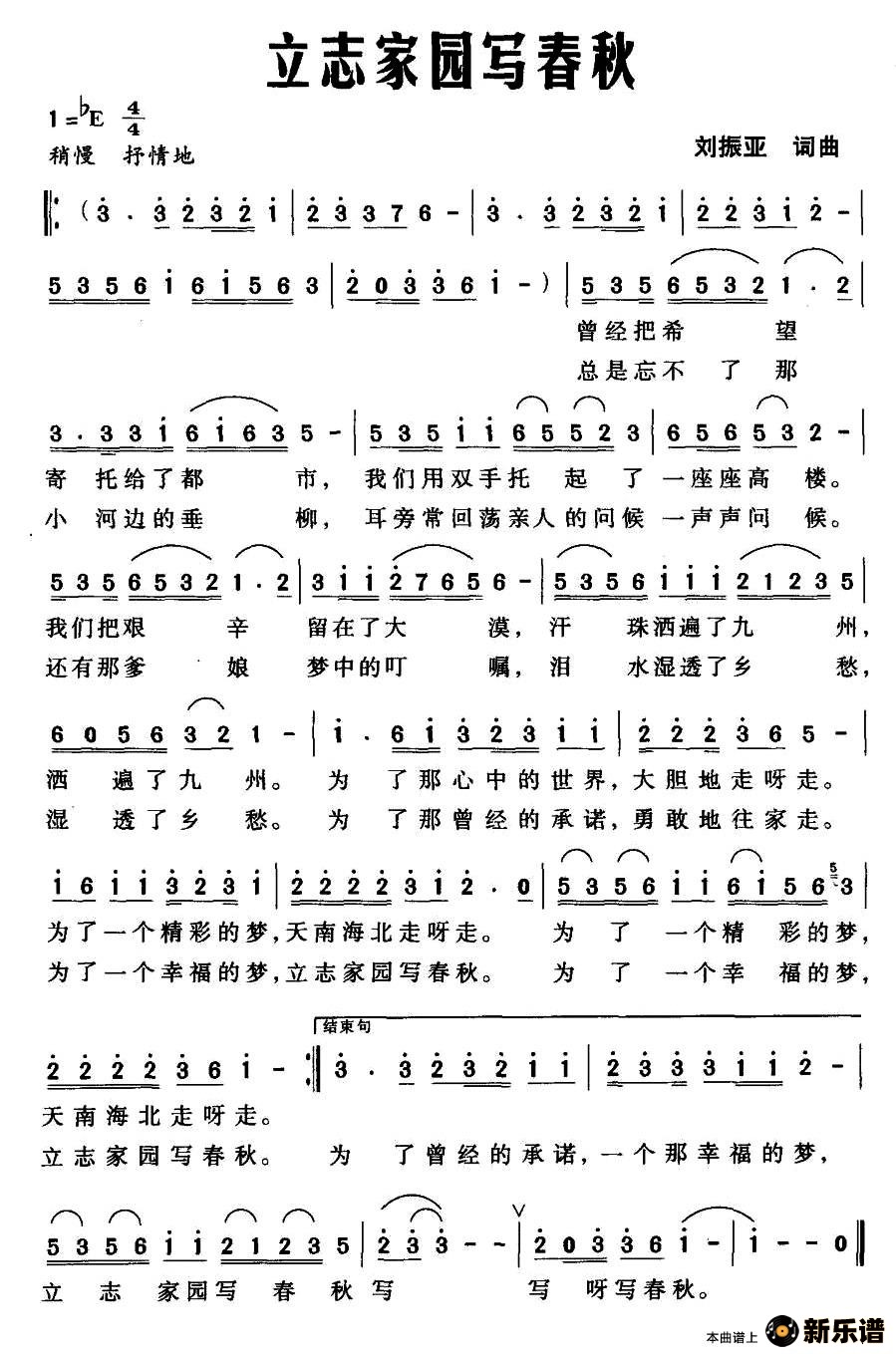 演唱的立志家园写春秋歌词,立志家园写春秋简谱.