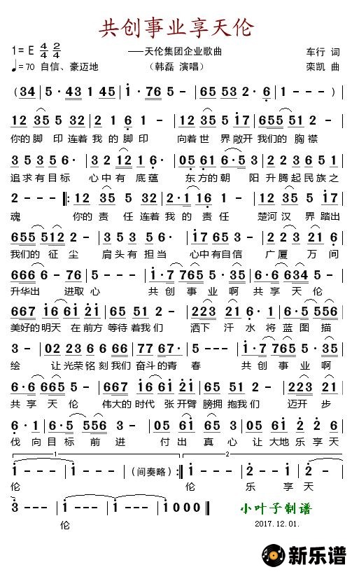《共创事业享天伦》简谱 韩磊-小叶子制谱