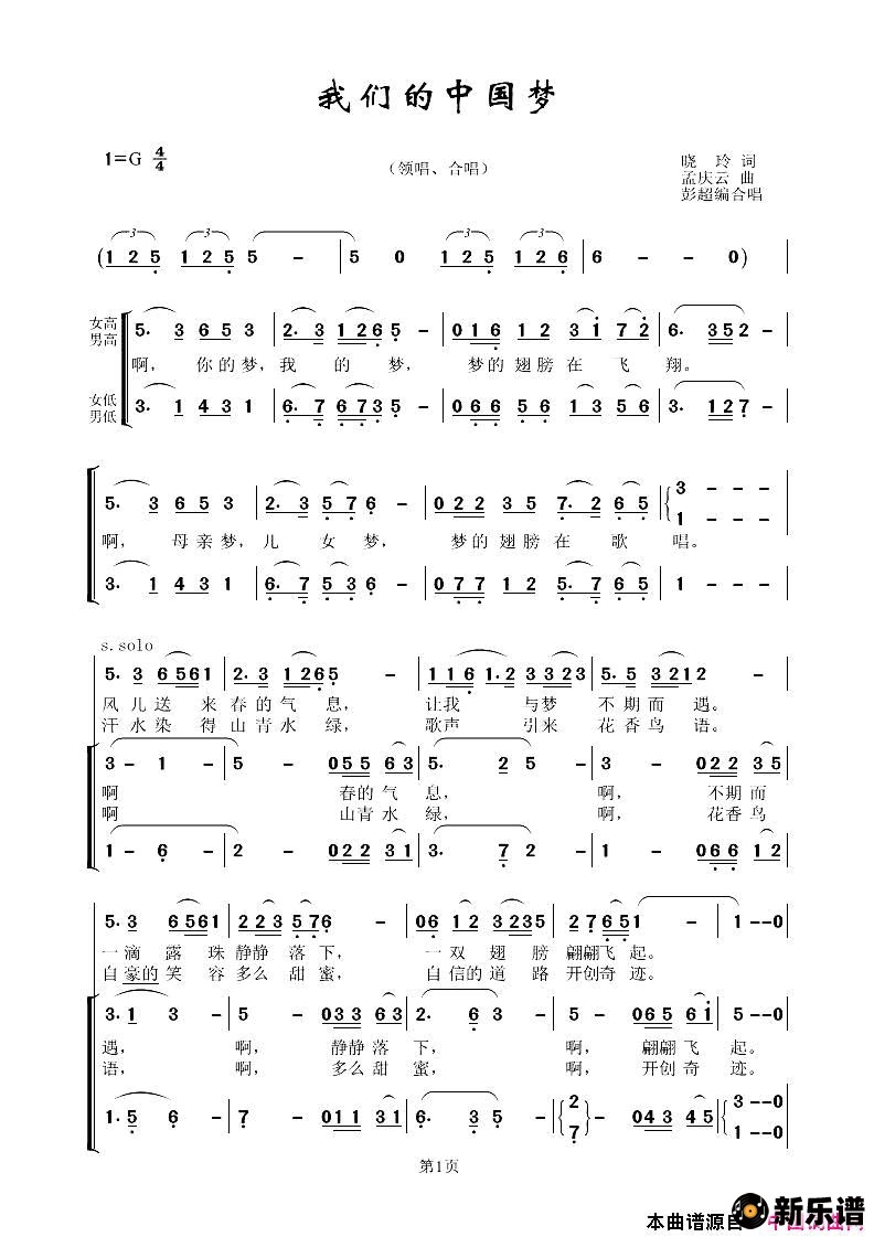 我们的中国梦最新曲谱