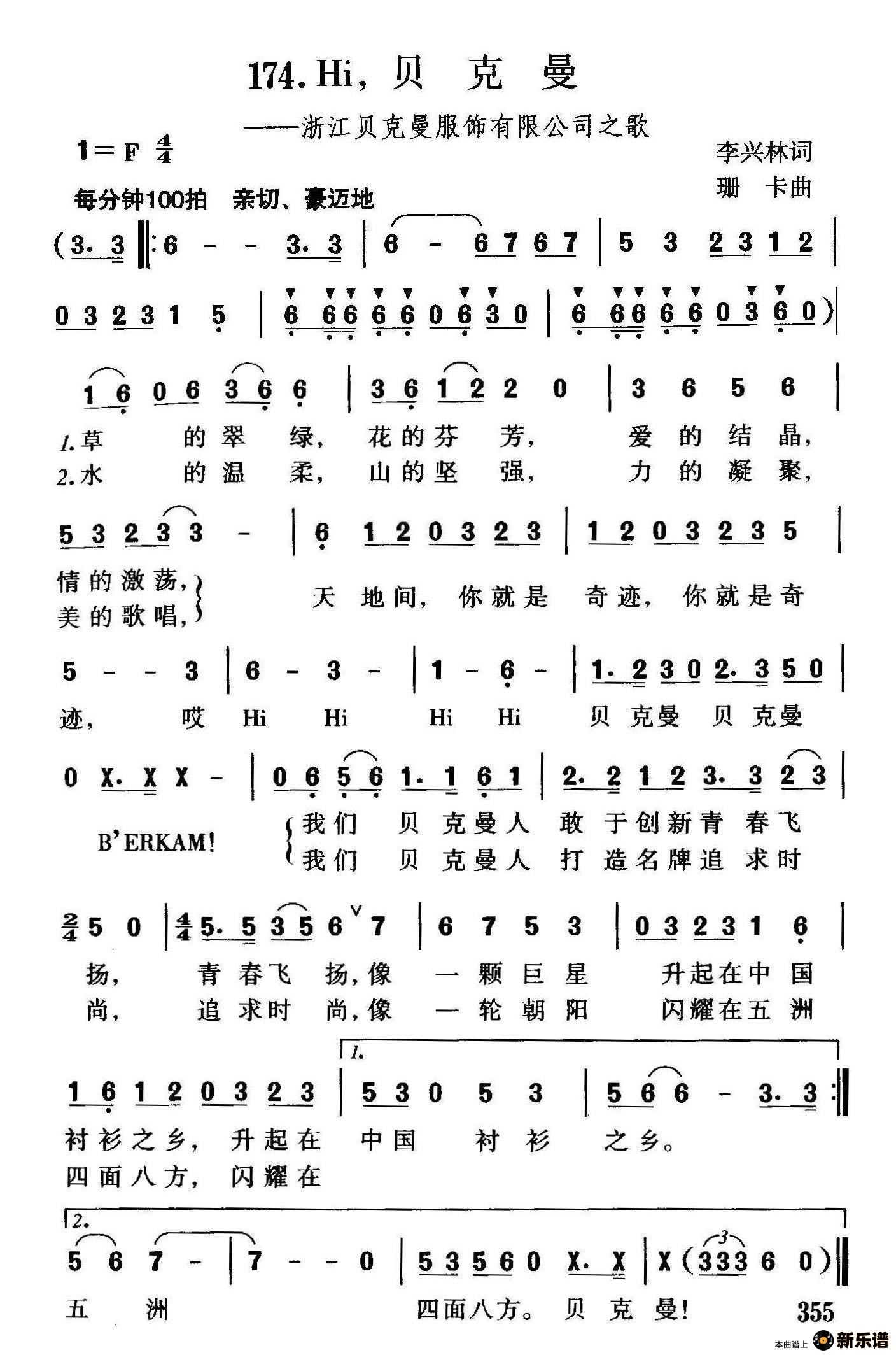 演唱的HI,贝克曼歌词,HI,贝克曼简谱.