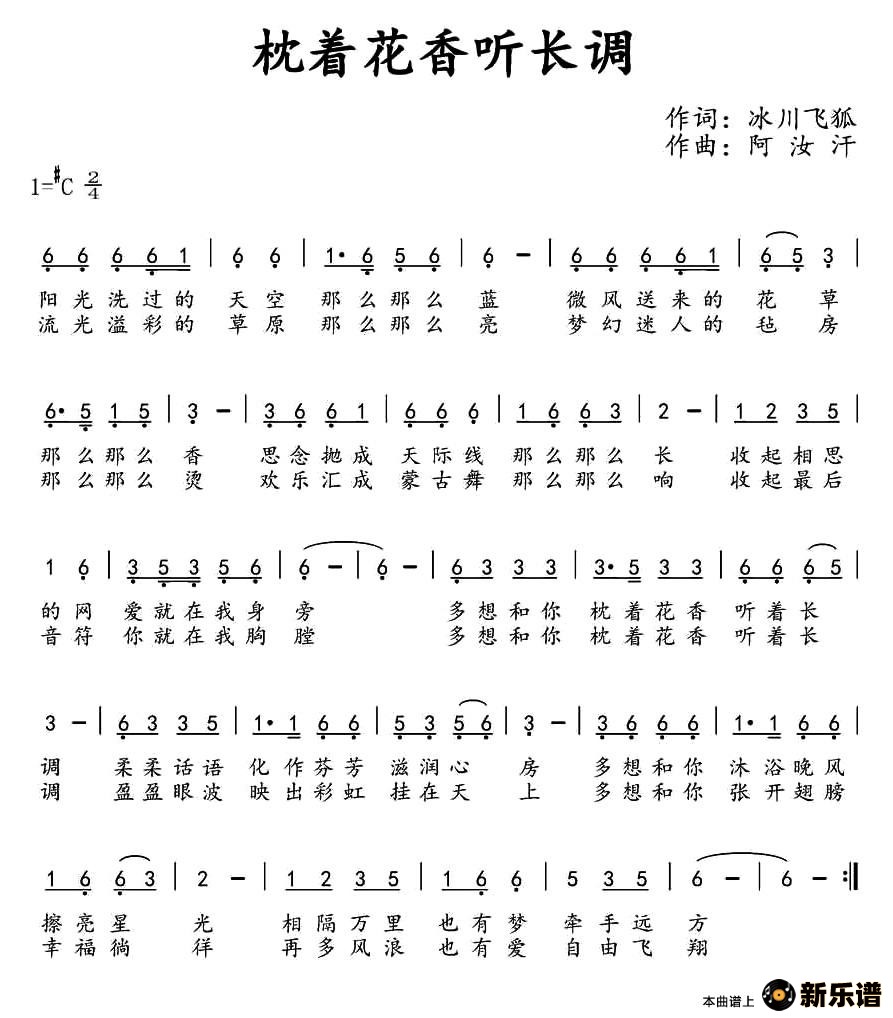 演唱的枕着花香听长调歌词,枕着花香听长调简谱.