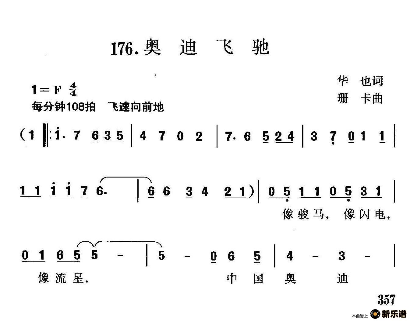 演唱的奥迪飞驰歌词,奥迪飞驰简谱.