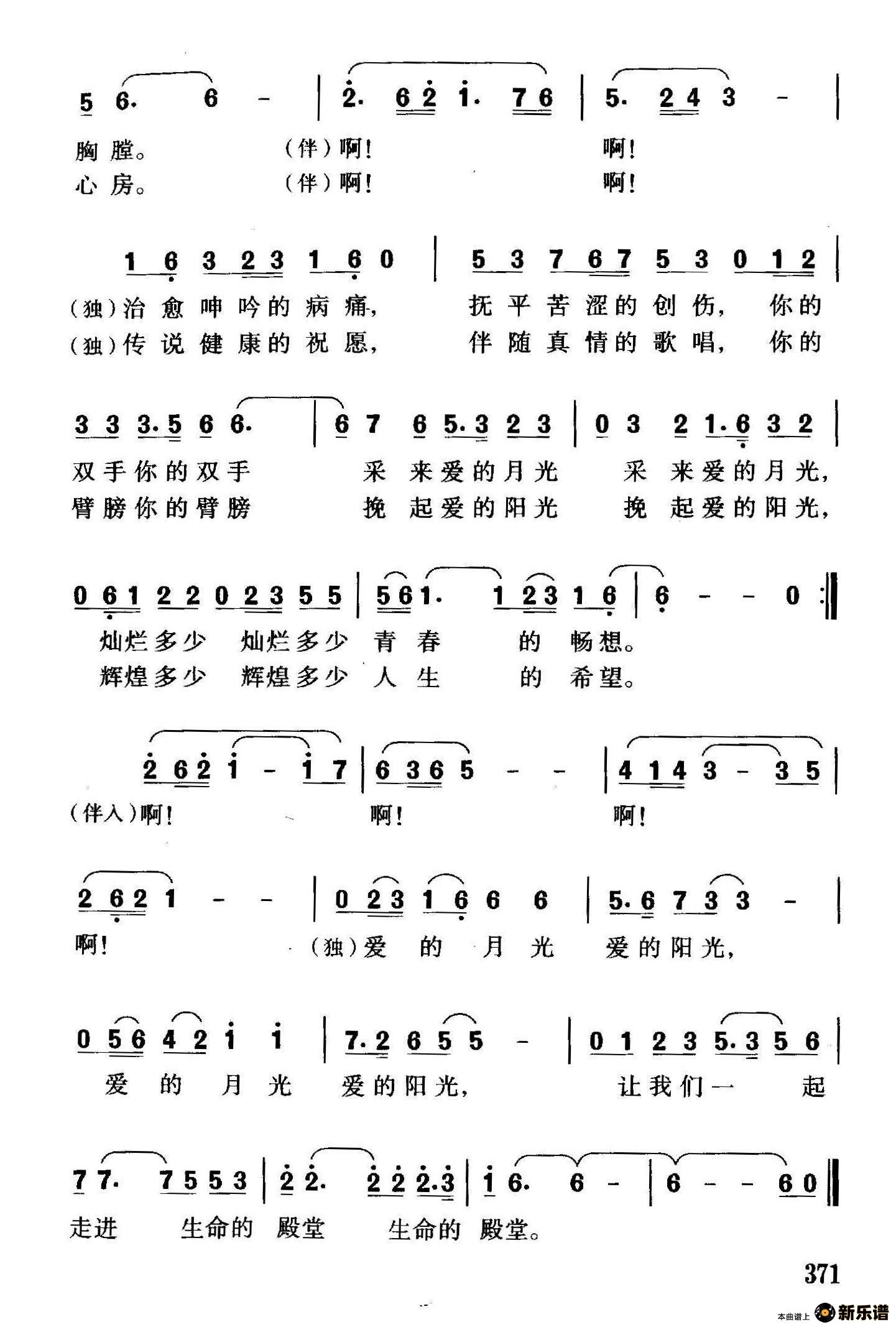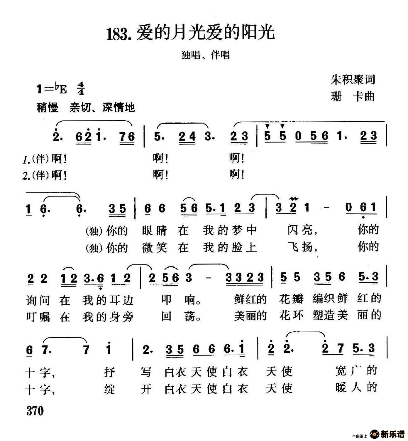 演唱的爱的月光爱的阳光歌词,爱的月光爱的阳光简谱.