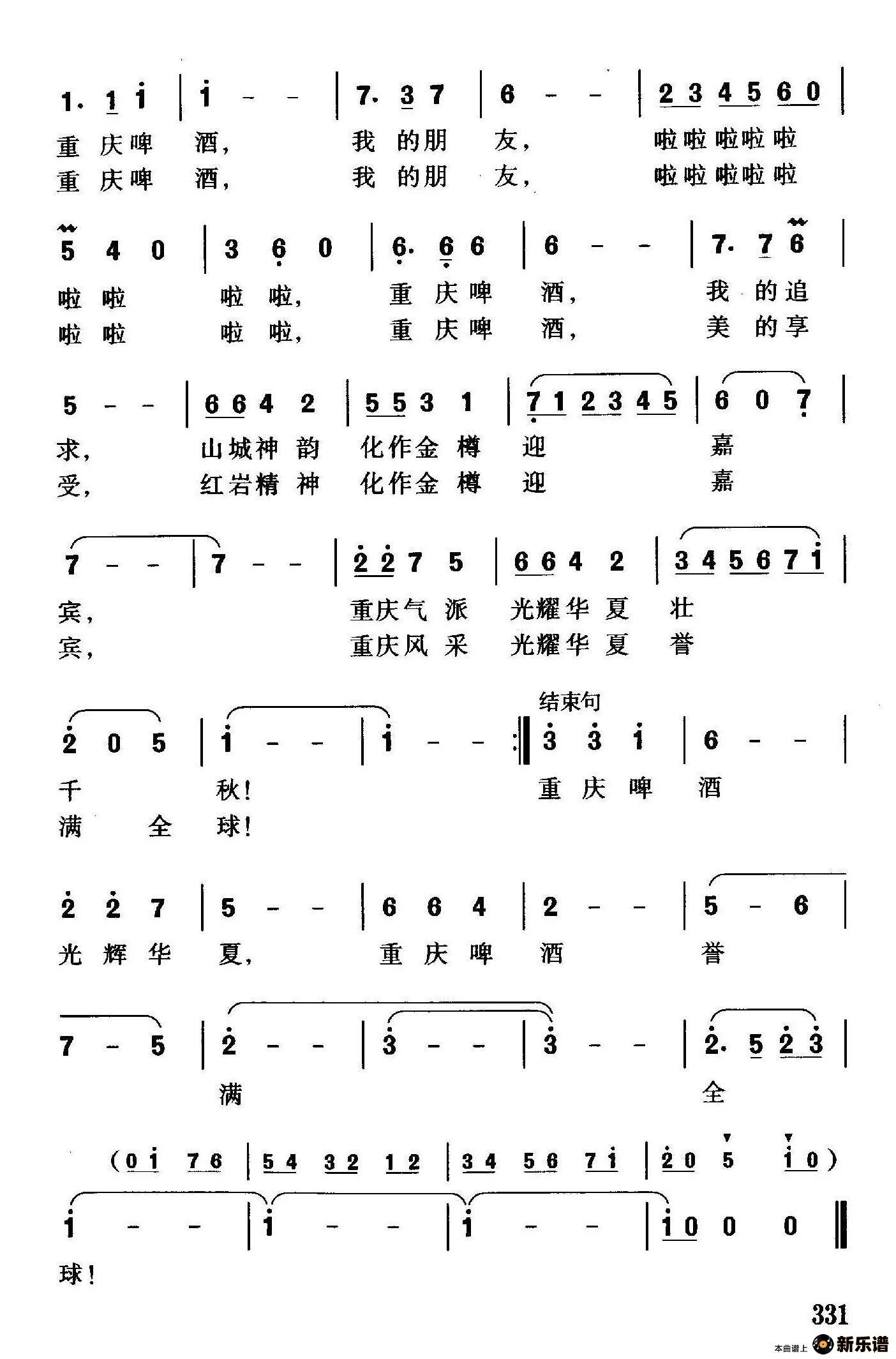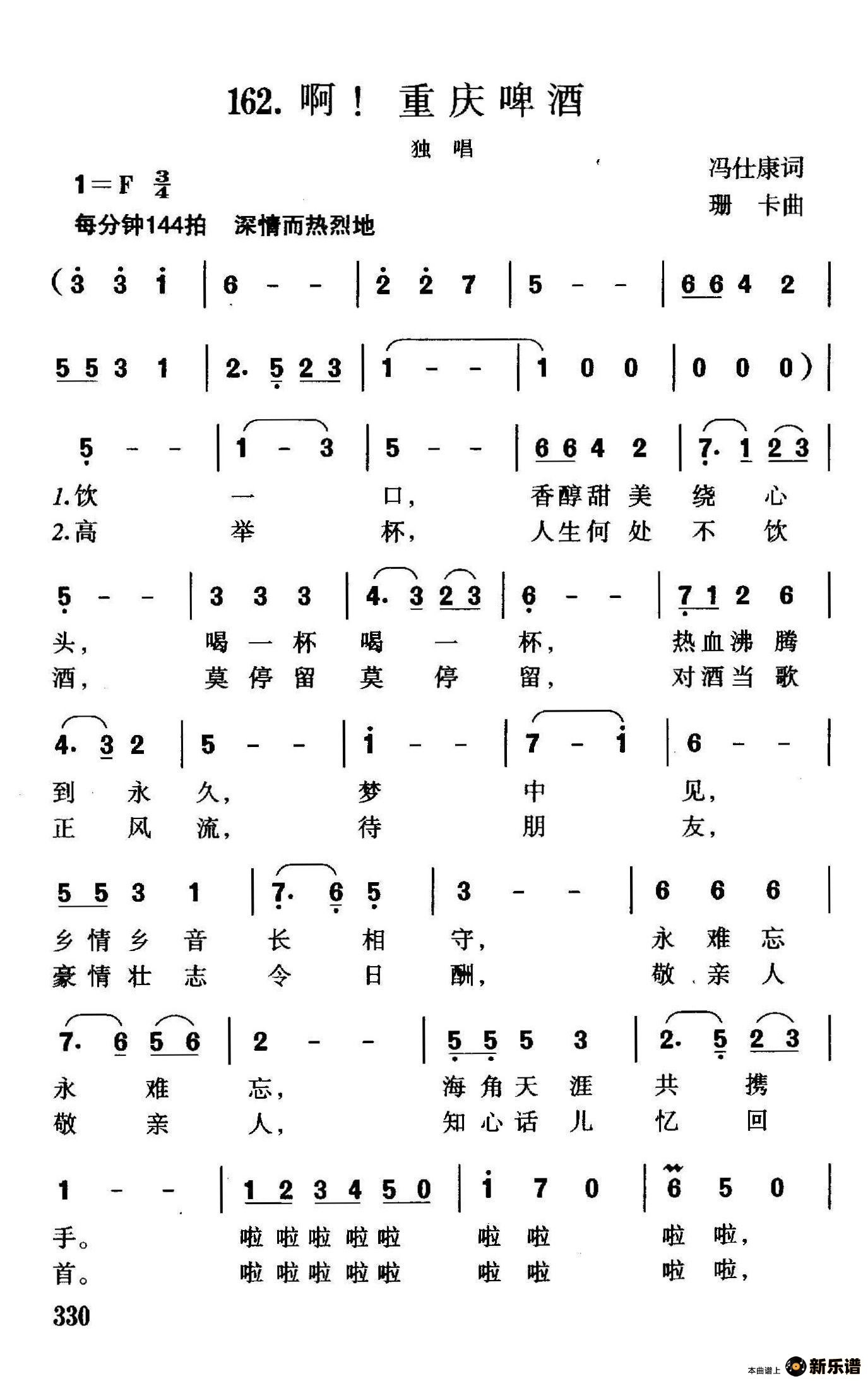 演唱的啊!重庆啤酒歌词,啊!重庆啤酒简谱.