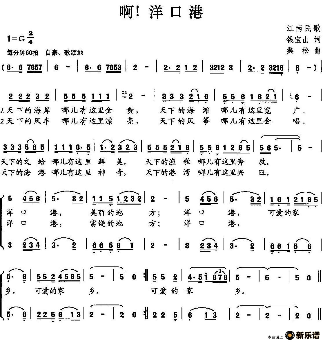 演唱的啊!洋口港歌词,啊!洋口港简谱.