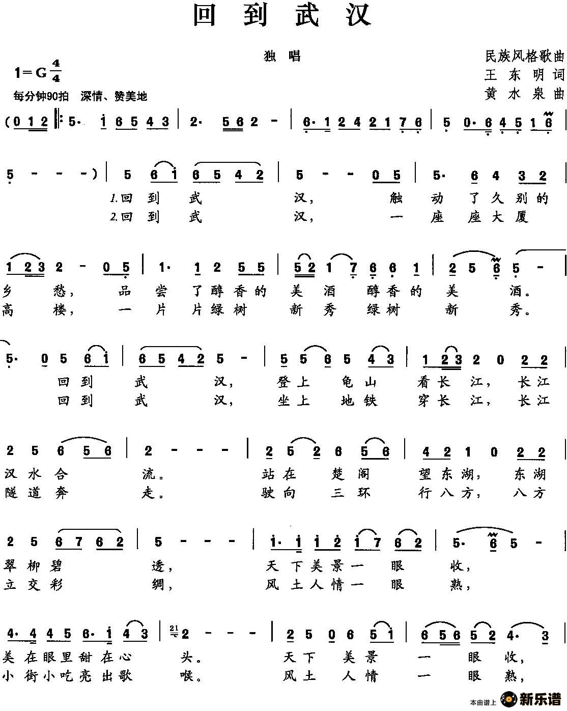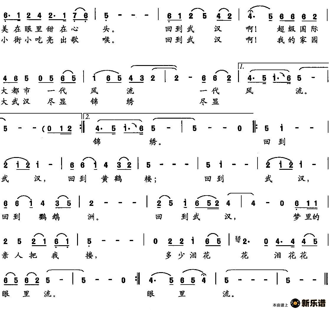 演唱的回到武汉歌词,回到武汉简谱.