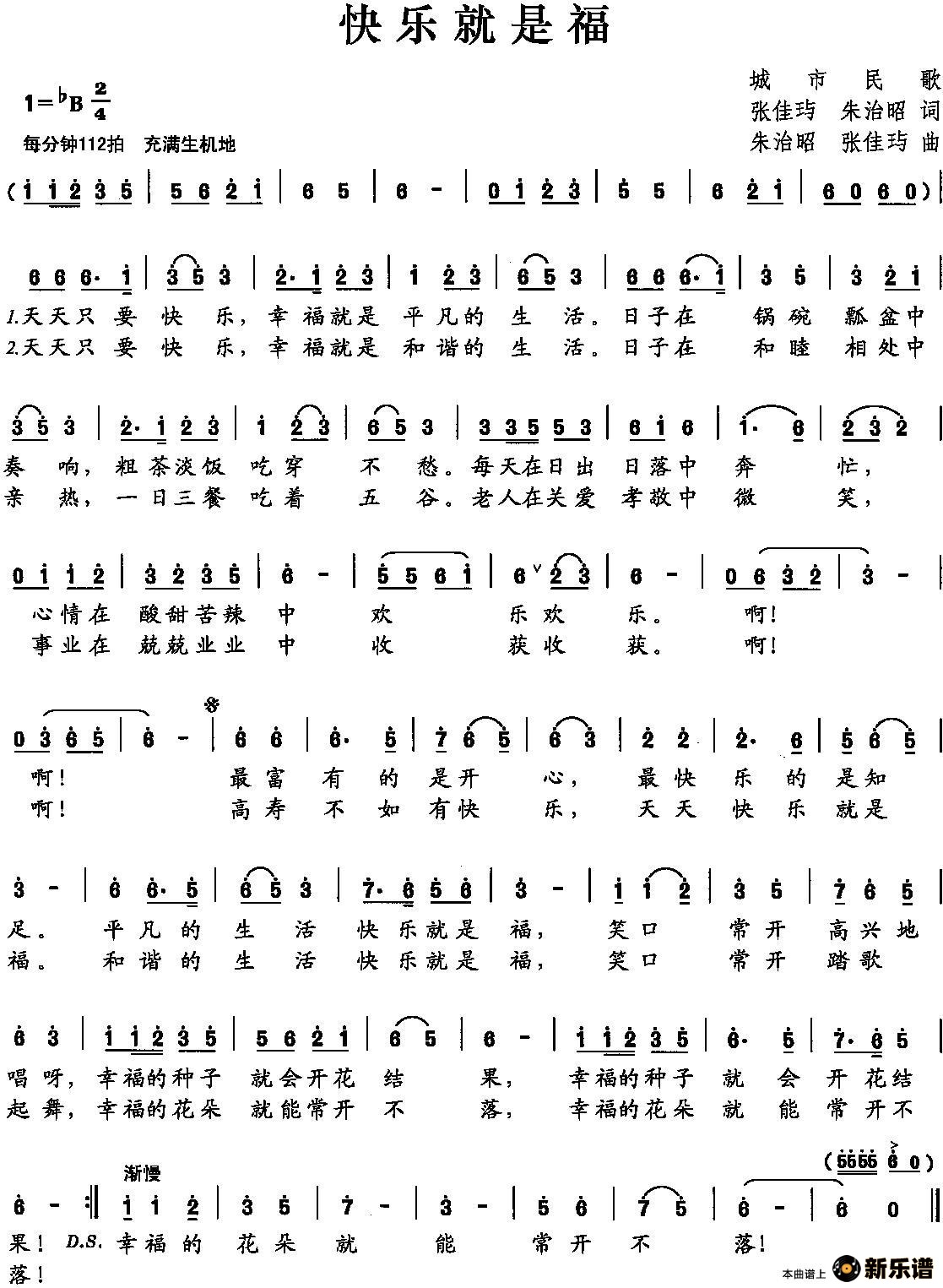 演唱的快乐就是福歌词,快乐就是福简谱.