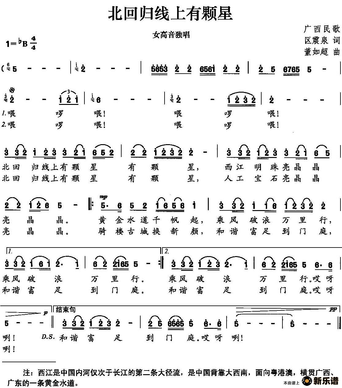 《北回归线上有颗星》简谱