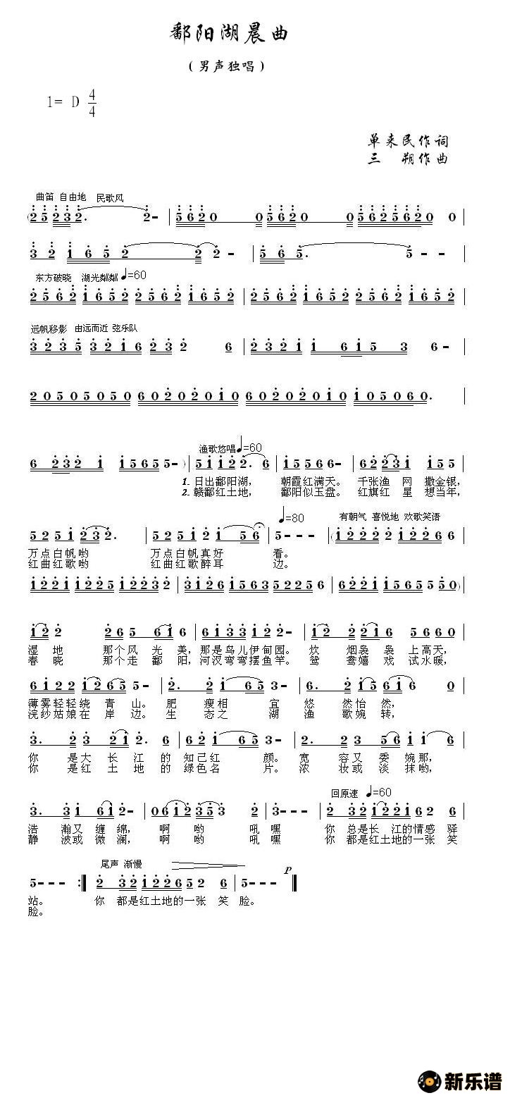 演唱的鄱阳湖晨曲歌词,鄱阳湖晨曲简谱.