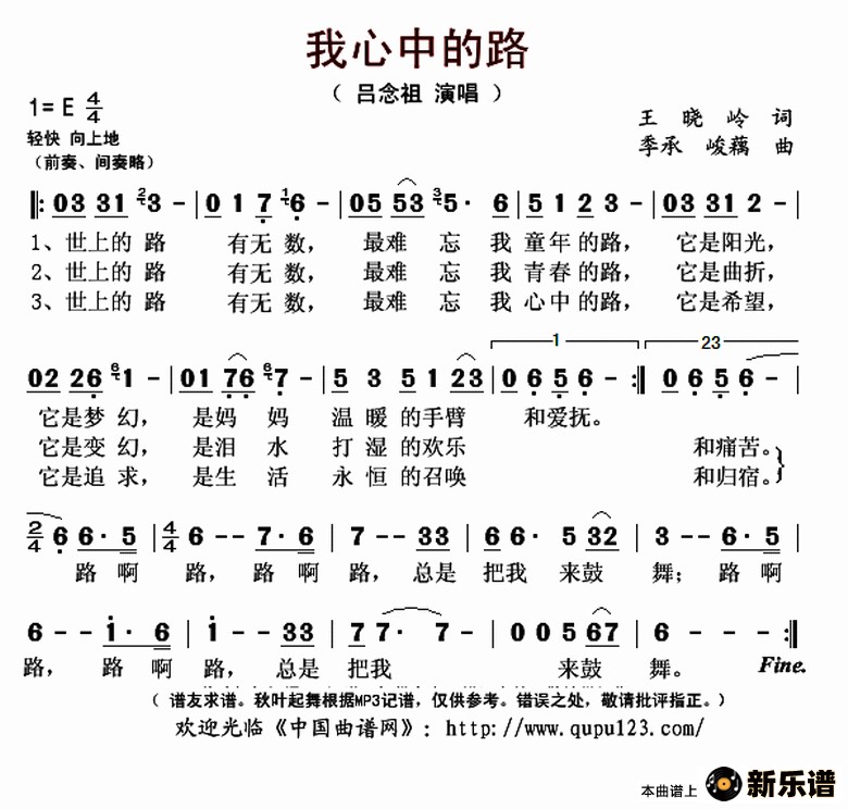 《我心中的路》简谱 吕念祖