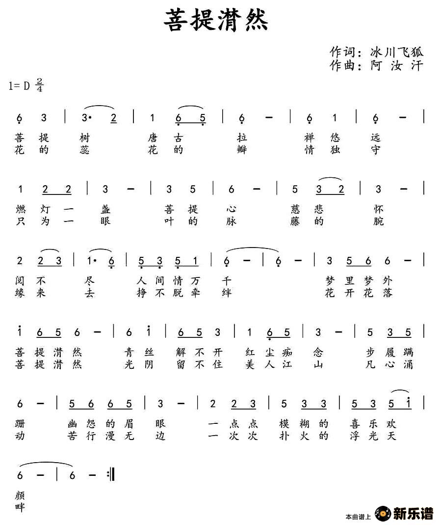 演唱的菩提潸然歌词,菩提潸然简谱.