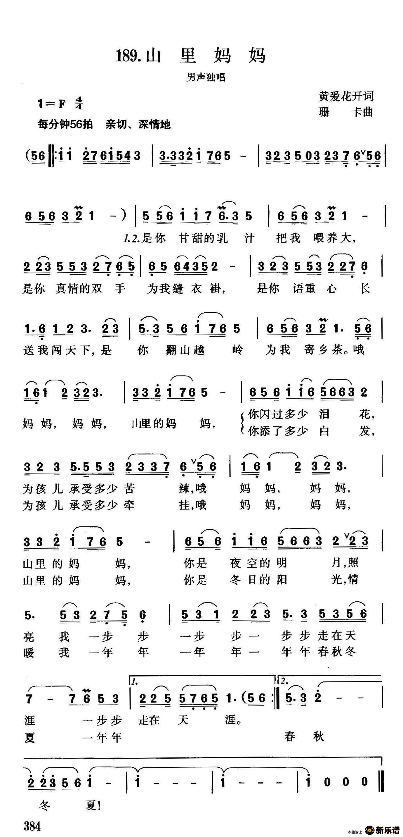 演唱的山里妈妈歌词,山里妈妈简谱.