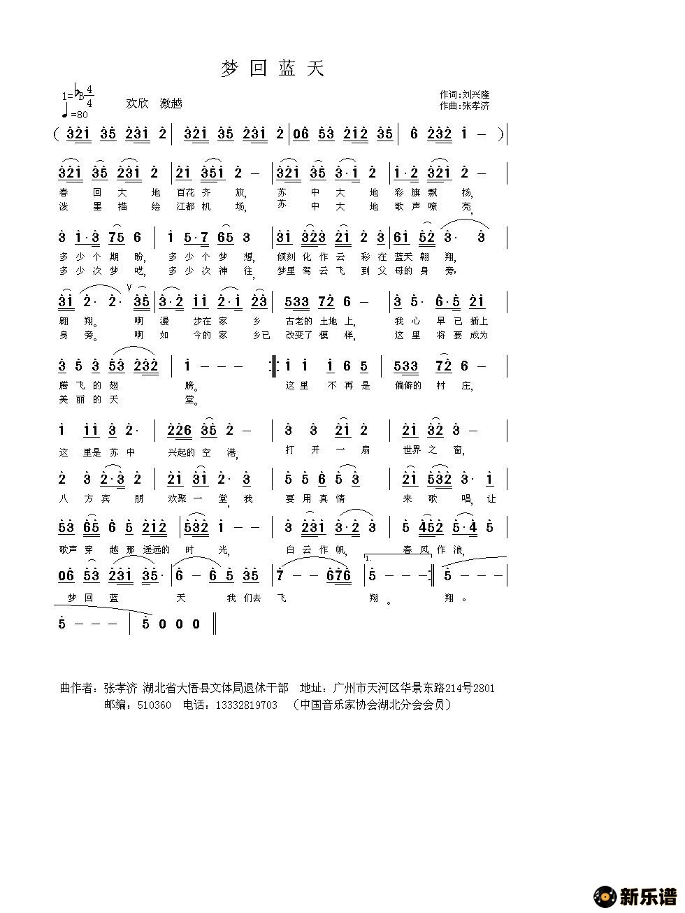 演唱的梦回蓝天歌词,梦回蓝天简谱.