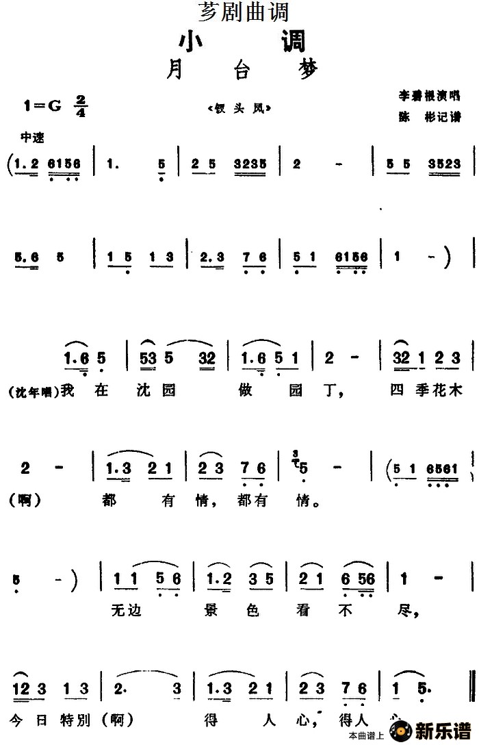 李碧根演唱的[芗剧曲调]月台梦(选自《钗头凤》)歌词,[芗剧曲调]月台梦(选自《钗头凤》)简谱.