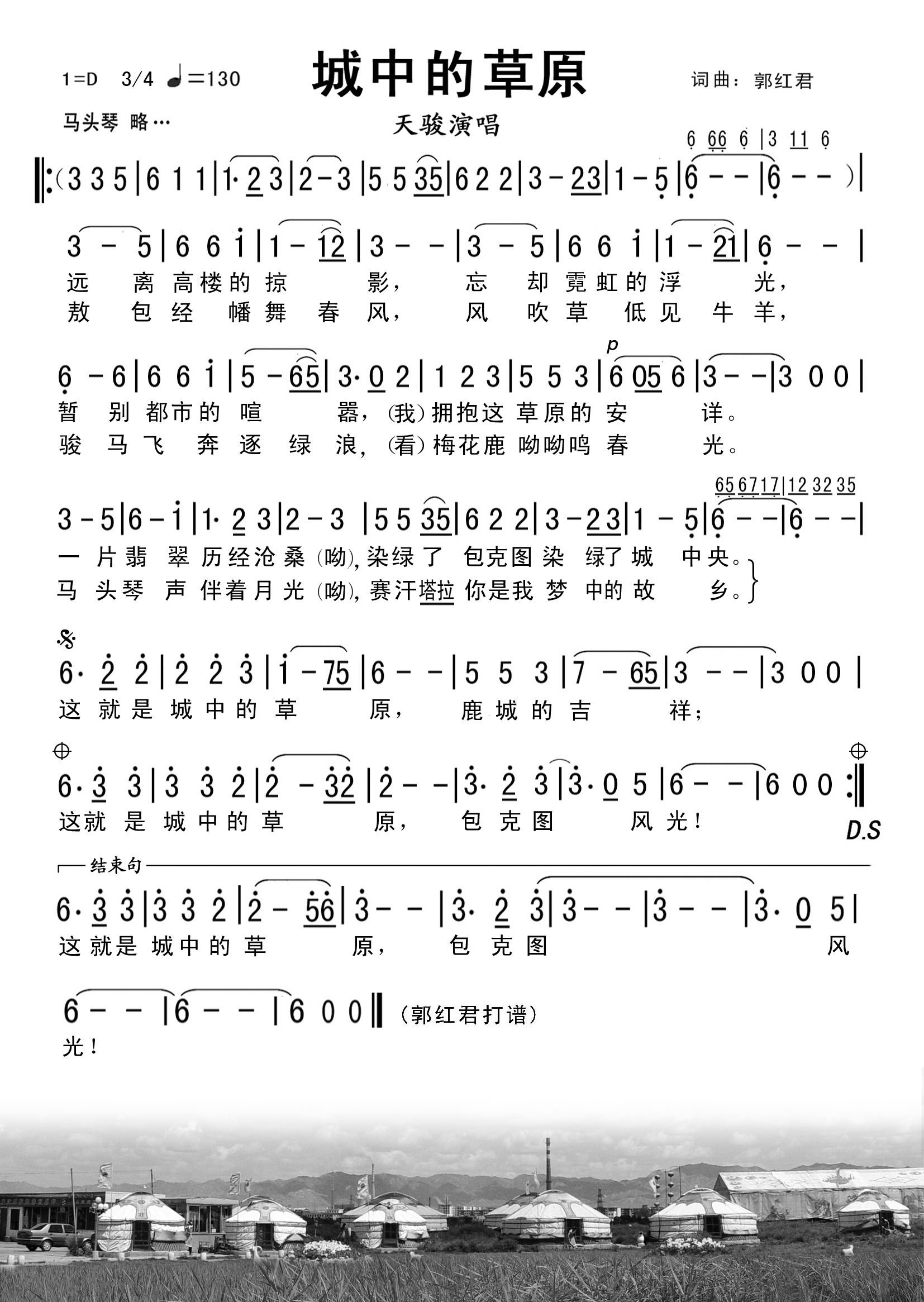 天骏演唱的城中的草原(天骏版)歌词,城中的草原(天骏版)简谱.