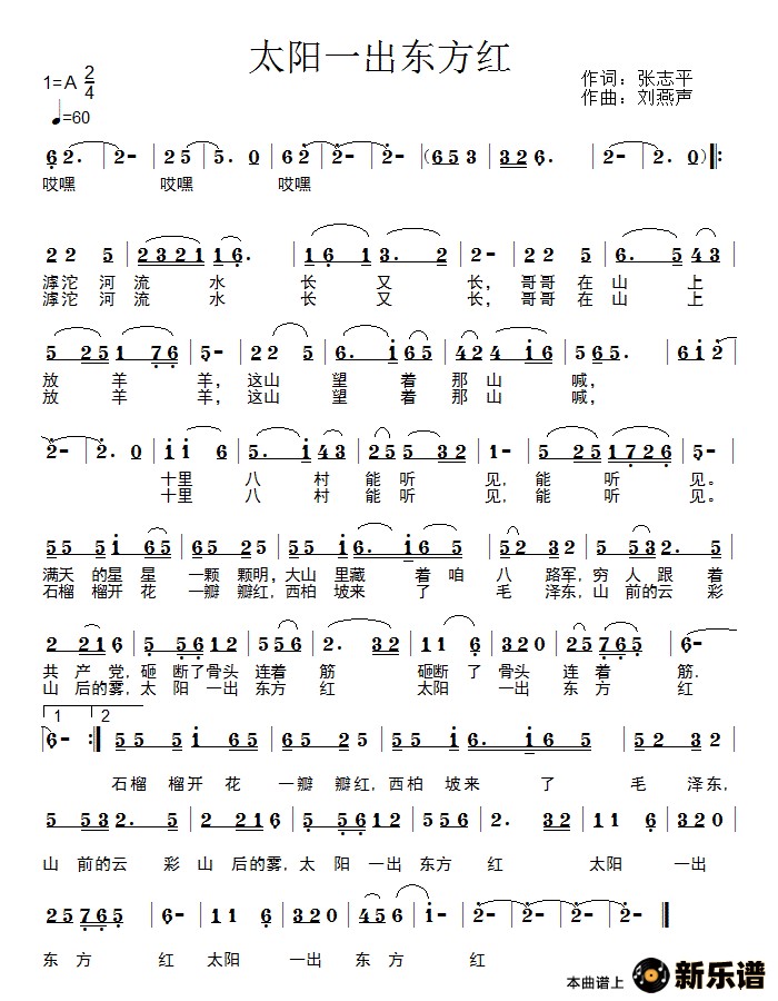 演唱的太阳一出东方红歌词,太阳一出东方红简谱.