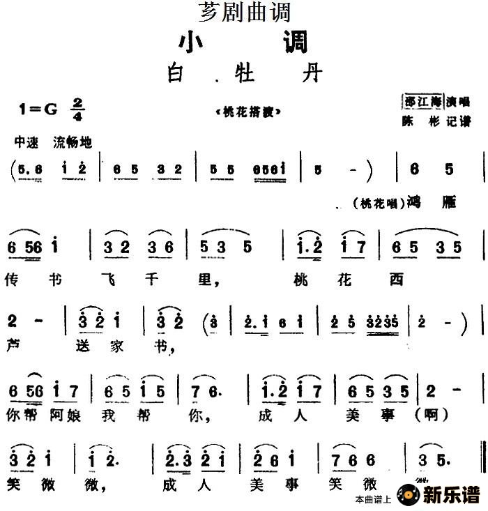 [芗剧曲调]白牡丹(选自《桃花搭渡》)/邵江海 桃花搭渡 相关曲谱