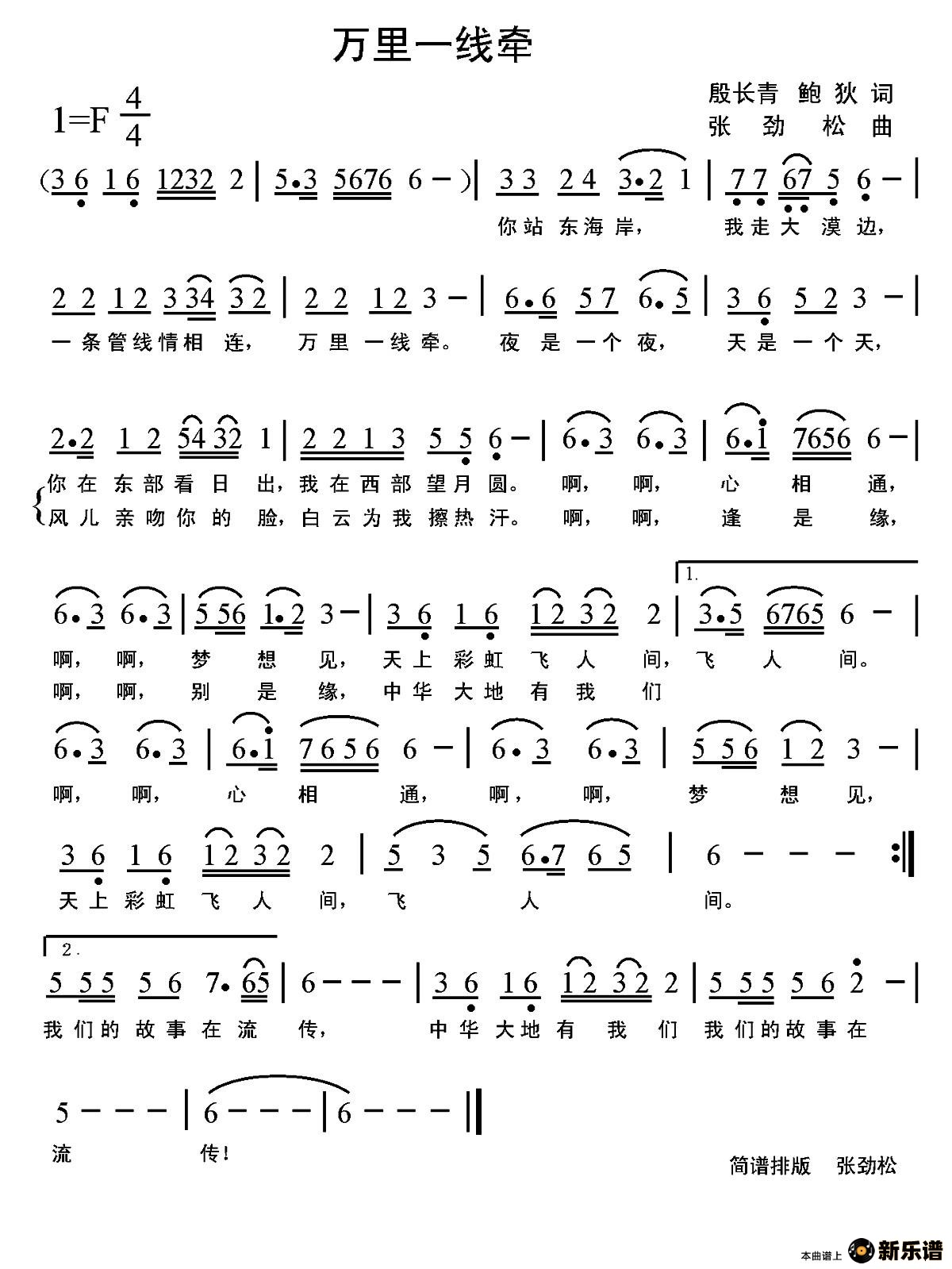 演唱的万里一线牵歌词,万里一线牵简谱.