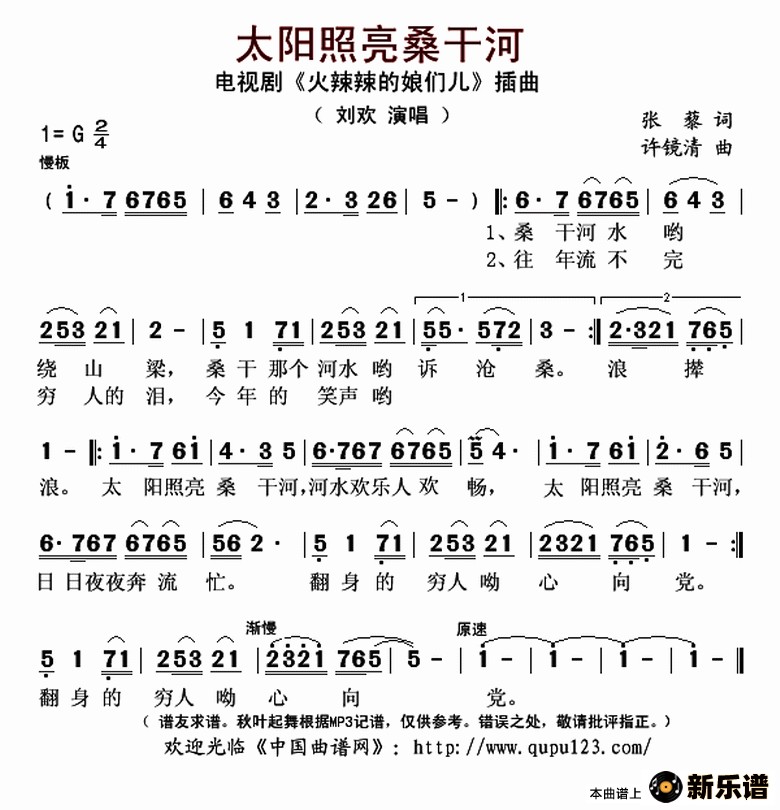 刘欢演唱的太阳照亮桑干河(电视剧《火辣辣的娘们儿》插曲)歌词,太阳照亮桑干河(电视剧《火辣辣的娘们儿》插曲)简谱.
