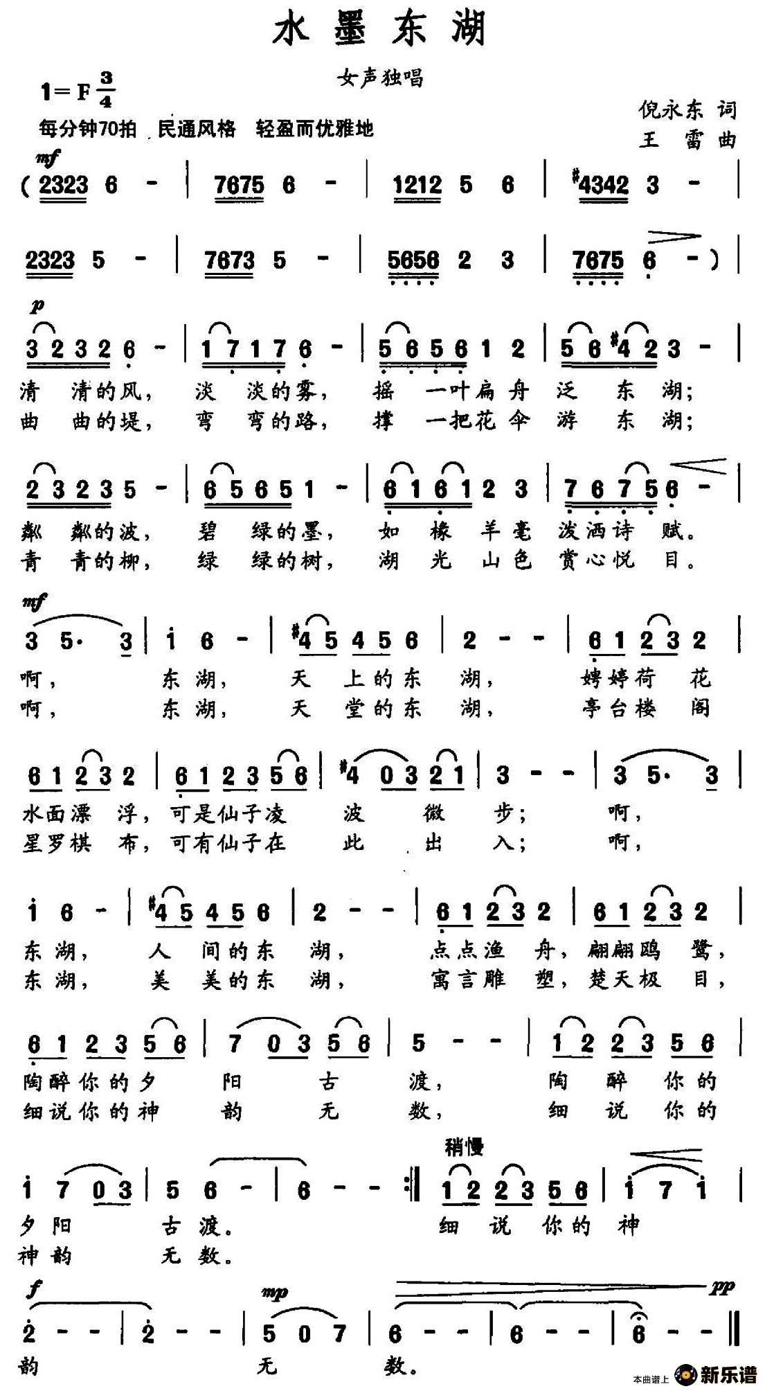 演唱的水墨东湖歌词,水墨东湖简谱.