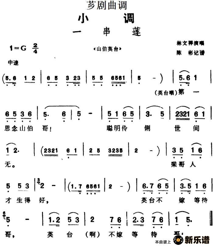[芗剧曲调]一串莲(选自《山伯英台》)/林文祥 山伯英台 相关曲谱