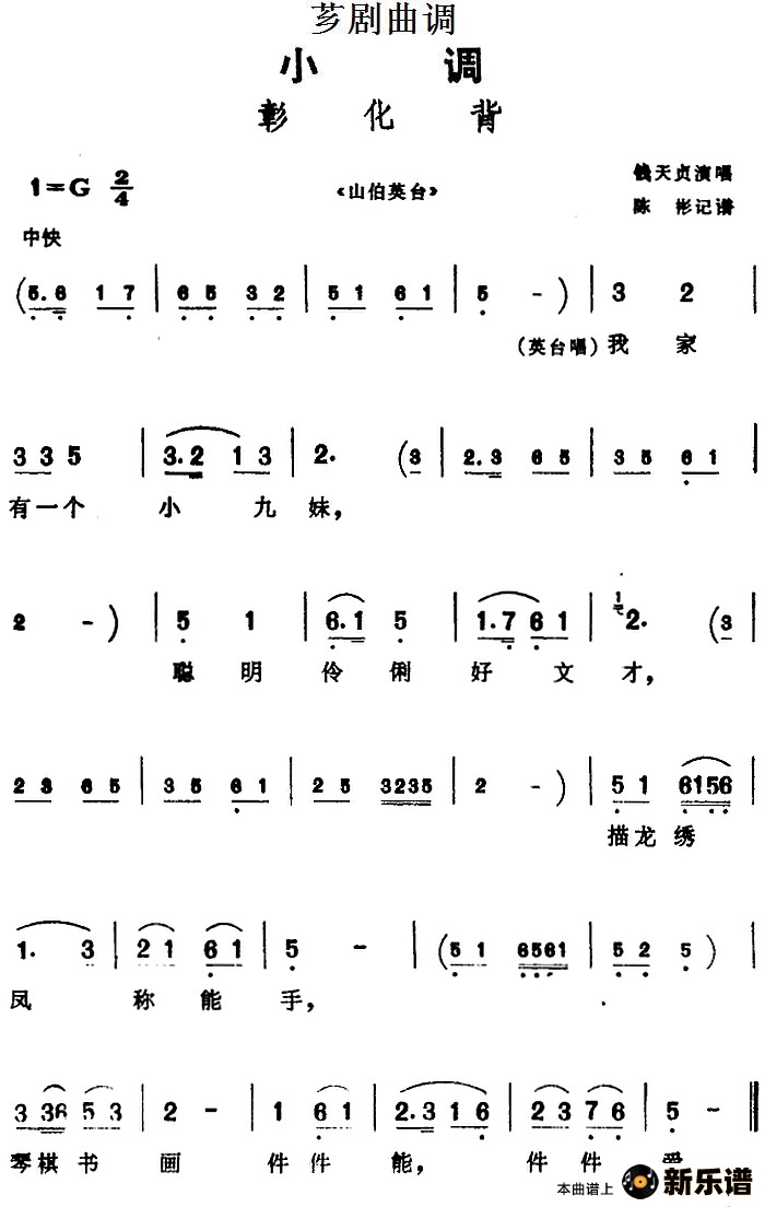[芗剧曲调]彰化背(选自《山伯英台》)/钱天贞 山伯英台 相关曲谱