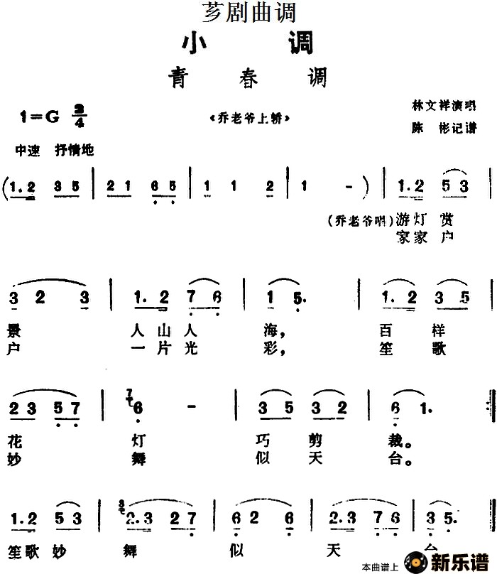林文祥演唱的[芗剧曲调]青春调(选自《乔老爷上轿》)歌词,[芗剧曲调]青春调(选自《乔老爷上轿》)简谱.
