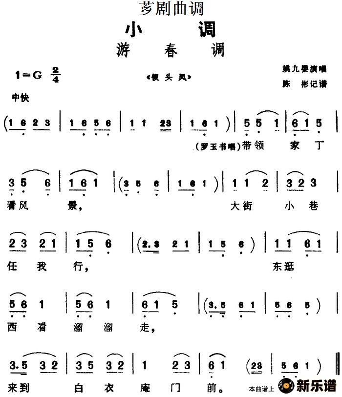 姚九婴演唱的[芗剧曲调]游春调(选自《钗头凤》)歌词,[芗剧曲调]游春调(选自《钗头凤》)简谱.