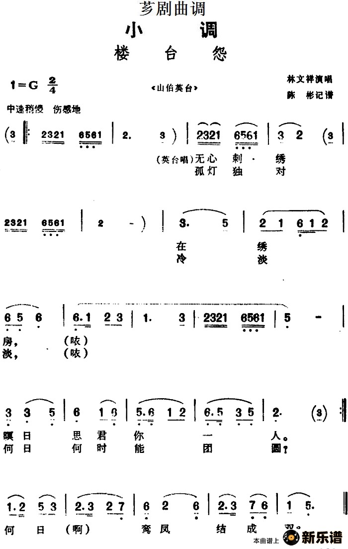 [芗剧曲调]楼台怨(选自《山伯英台》)/林文祥 山伯英台 相关曲谱