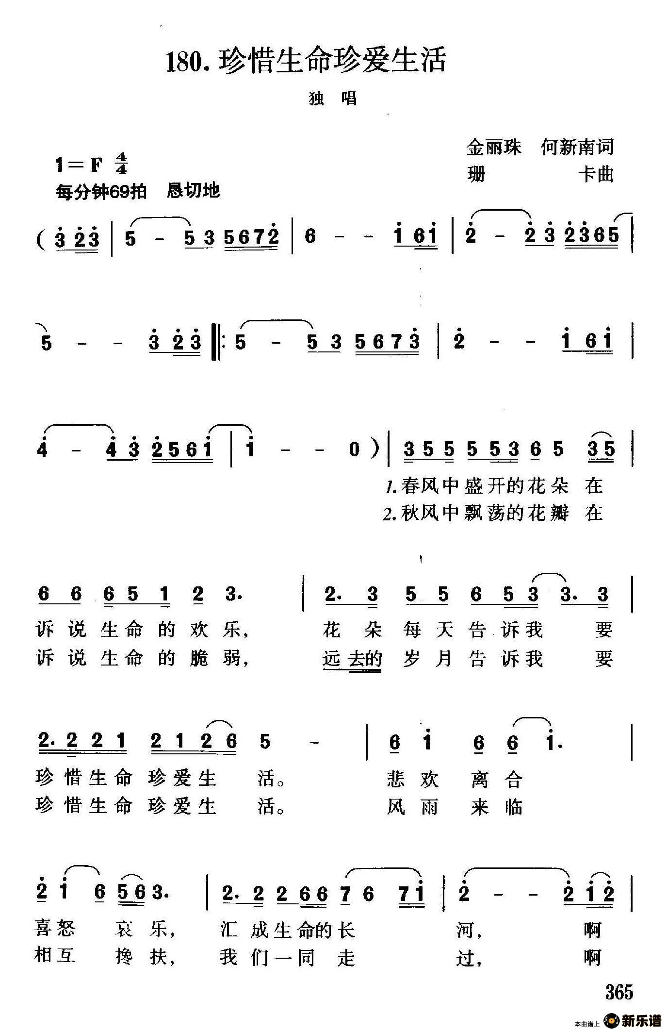 演唱的珍惜生命珍爱生活歌词,珍惜生命珍爱生活简谱.
