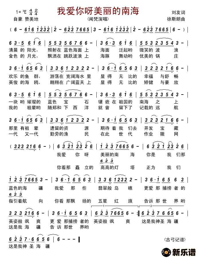 闻梵演唱的我爱你呀美丽的南海歌词,我爱你呀美丽的南海简谱.