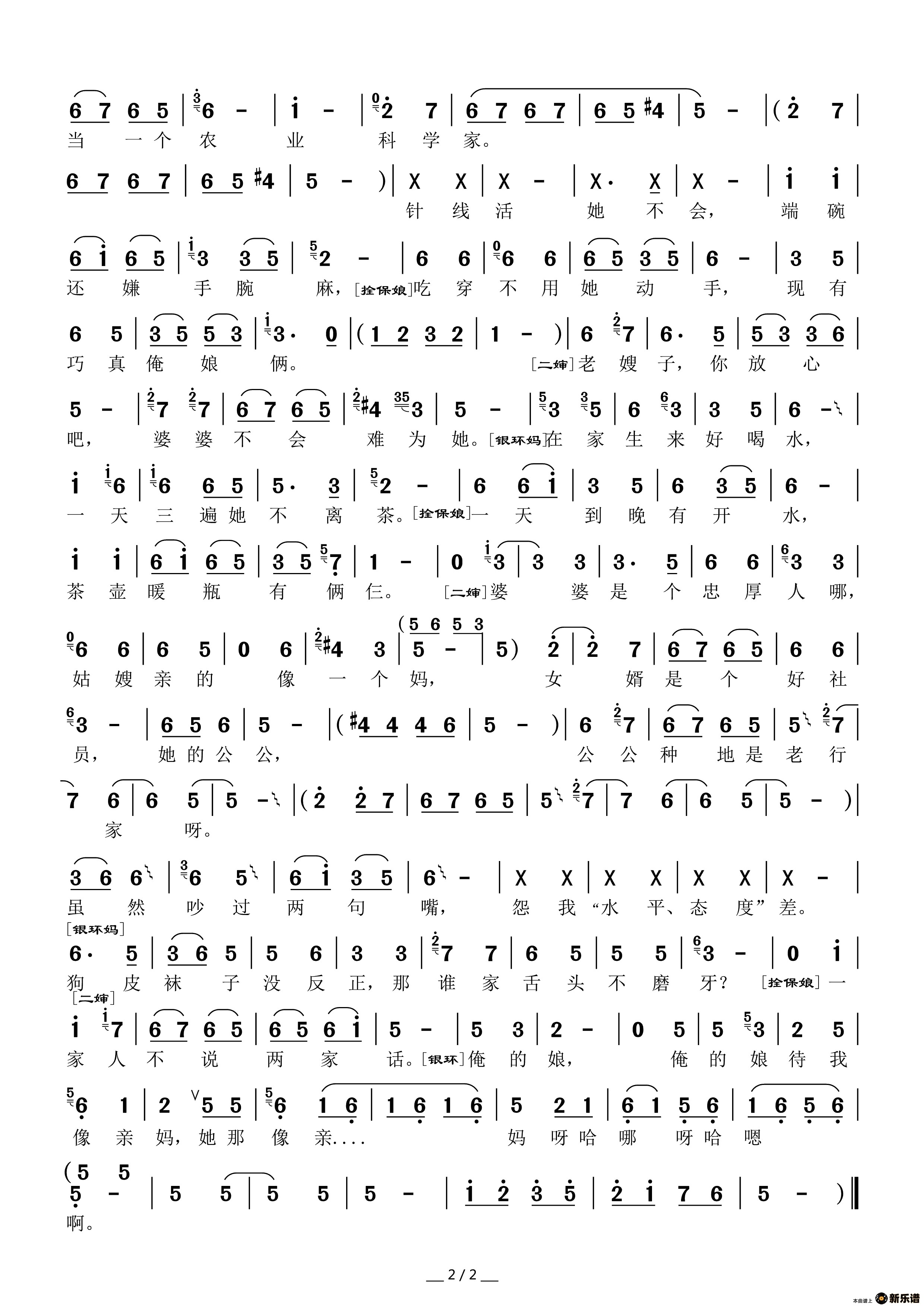 舞台版《朝阳沟》主旋律乐谱之第九场最新曲谱