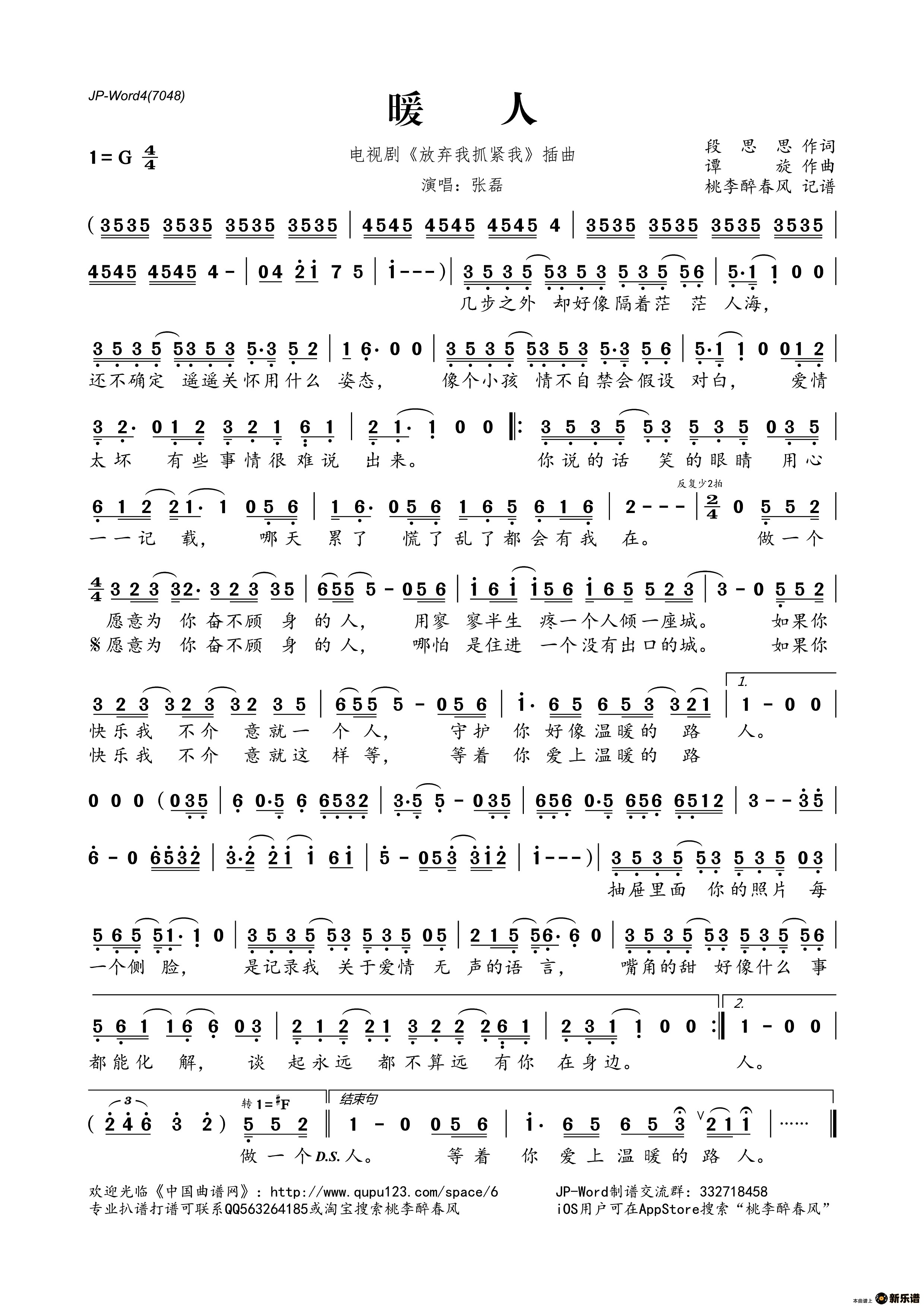 演唱的暖人(电视剧《放弃我抓紧我》插曲)歌词,暖人(电视剧《放弃我抓紧我》插曲)简谱.