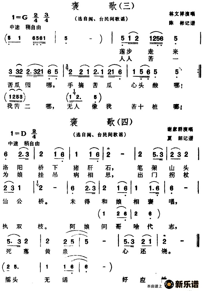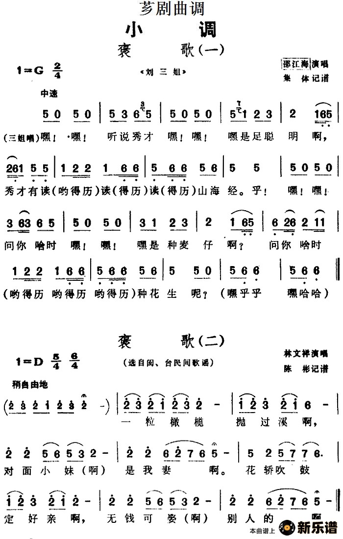 [芗剧曲调]褒歌(4首)/ 相关曲谱