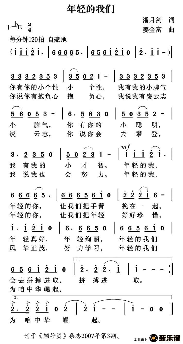 演唱的年轻的我们歌词,年轻的我们简谱.