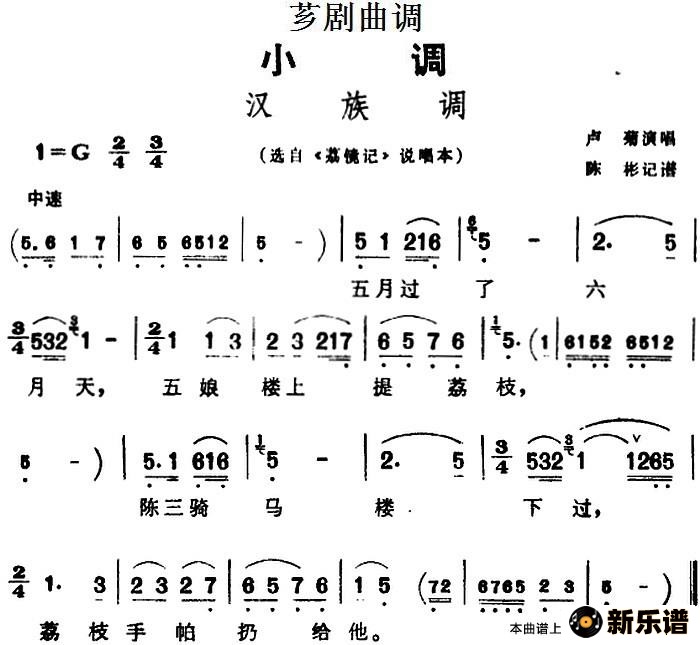 [芗剧曲调]汉族调(选自《荔镜记》说唱本)/卢菊 荔镜记 相关曲谱