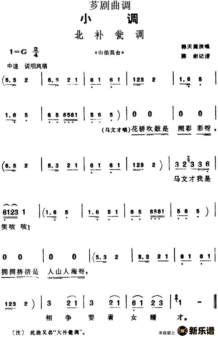 [芗剧曲调]北补瓮调(选自《山伯英台》)/韩天嵩 山伯英台 相关曲谱