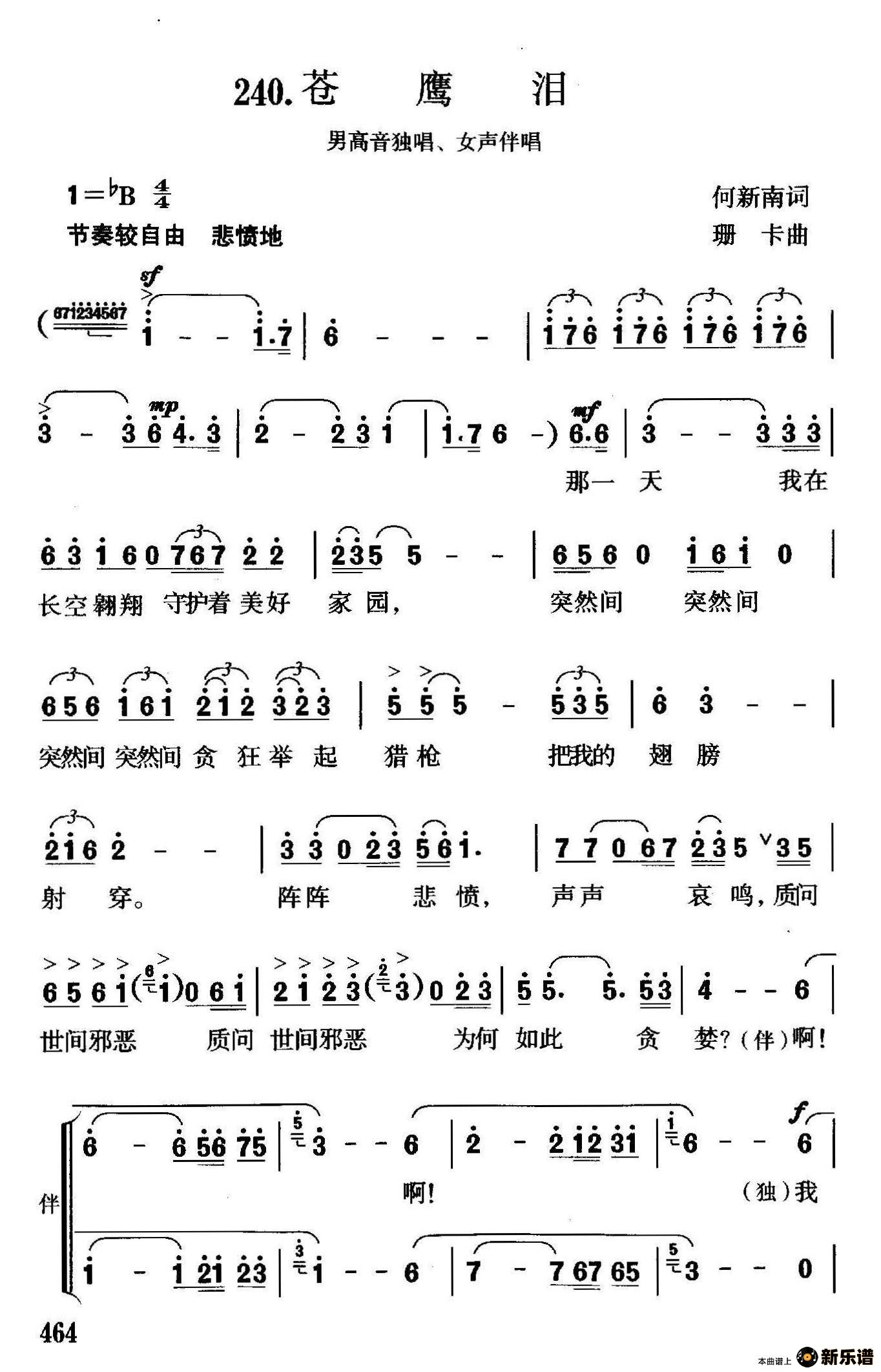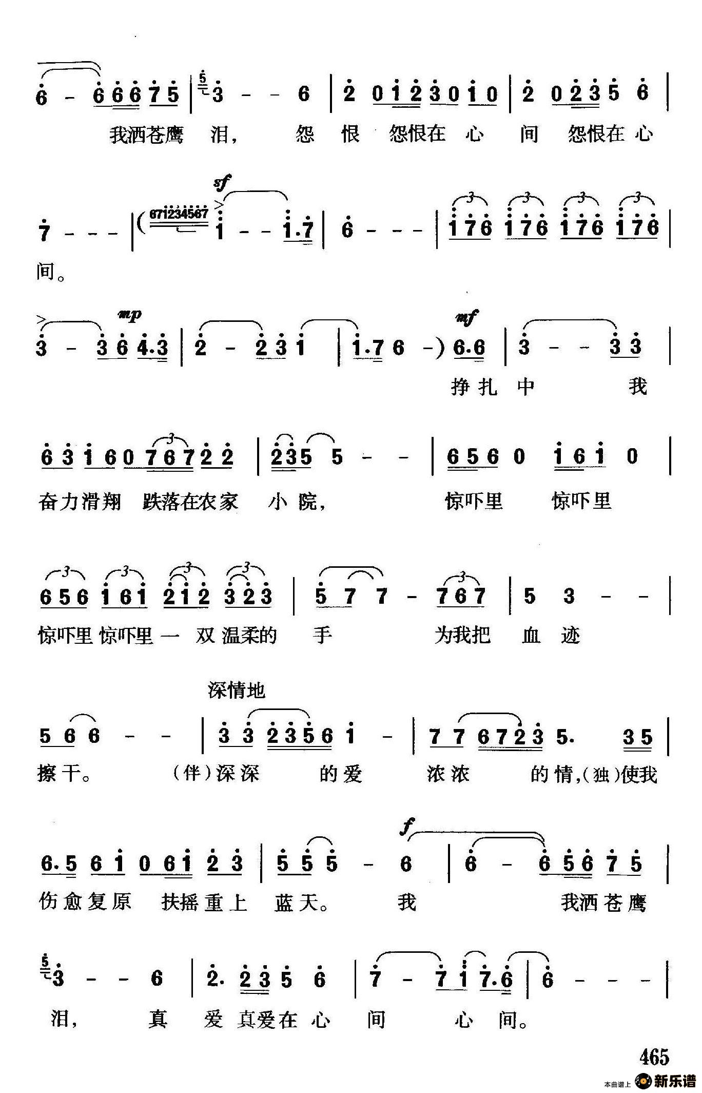 演唱的苍鹰泪歌词,苍鹰泪简谱.
