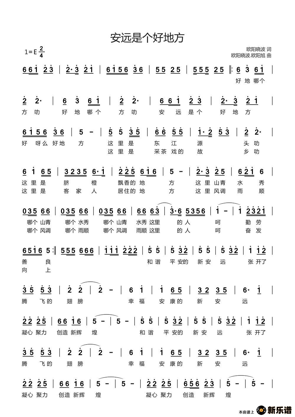 演唱的安远是个好地方歌词,安远是个好地方简谱.