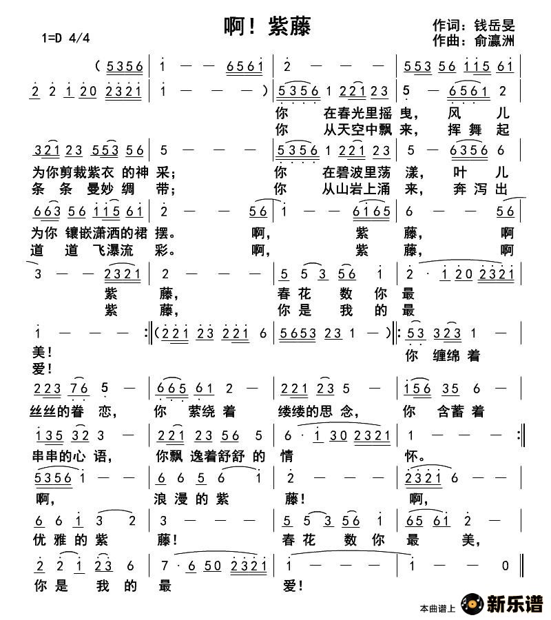 演唱的啊,紫藤歌词,啊,紫藤简谱.