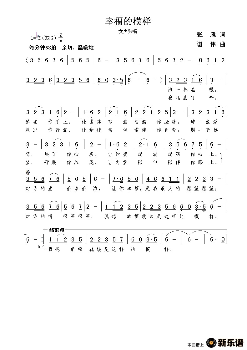 演唱的幸福的模样歌词,幸福的模样简谱.