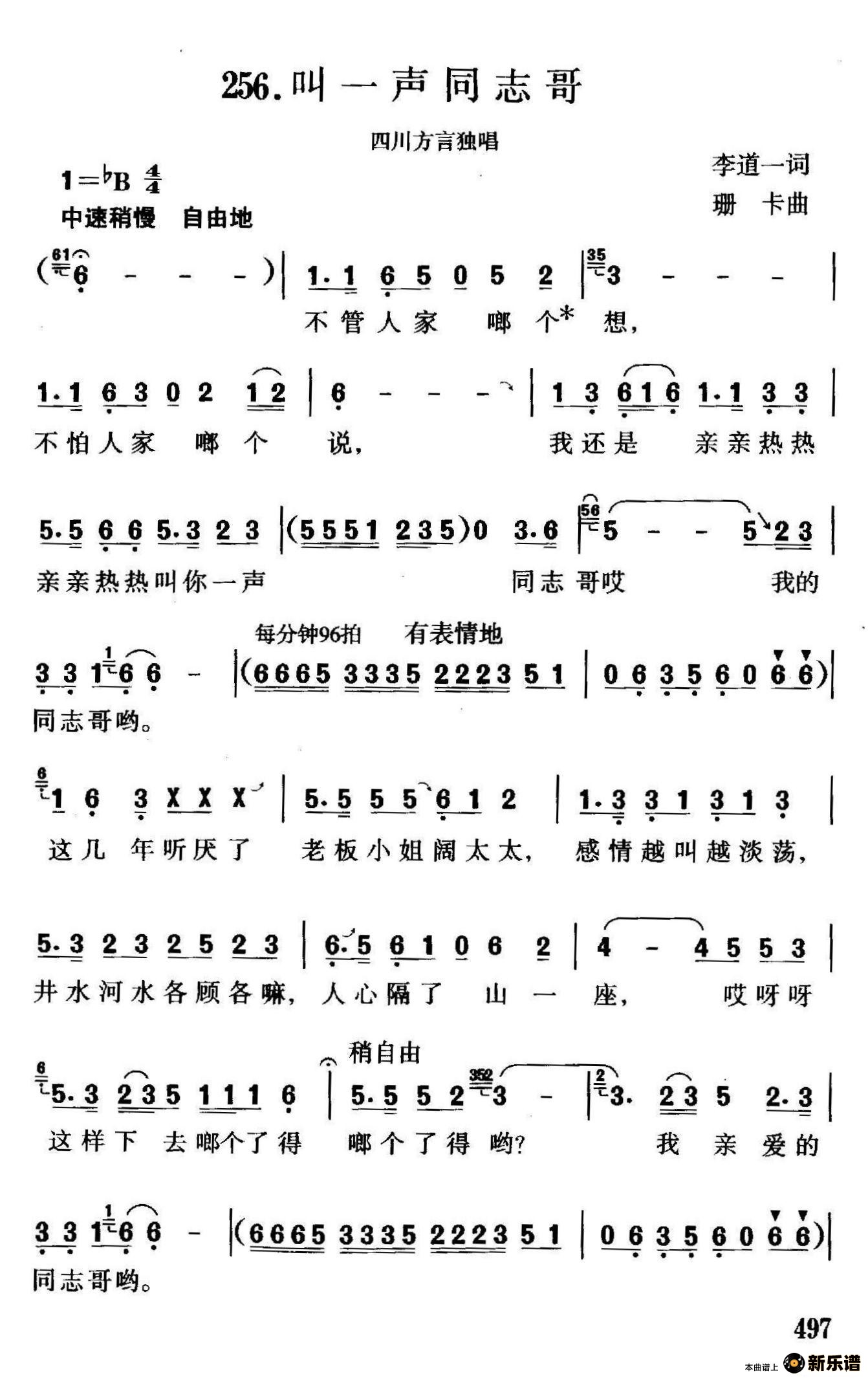演唱的叫一声同志歌歌词,叫一声同志歌简谱.
