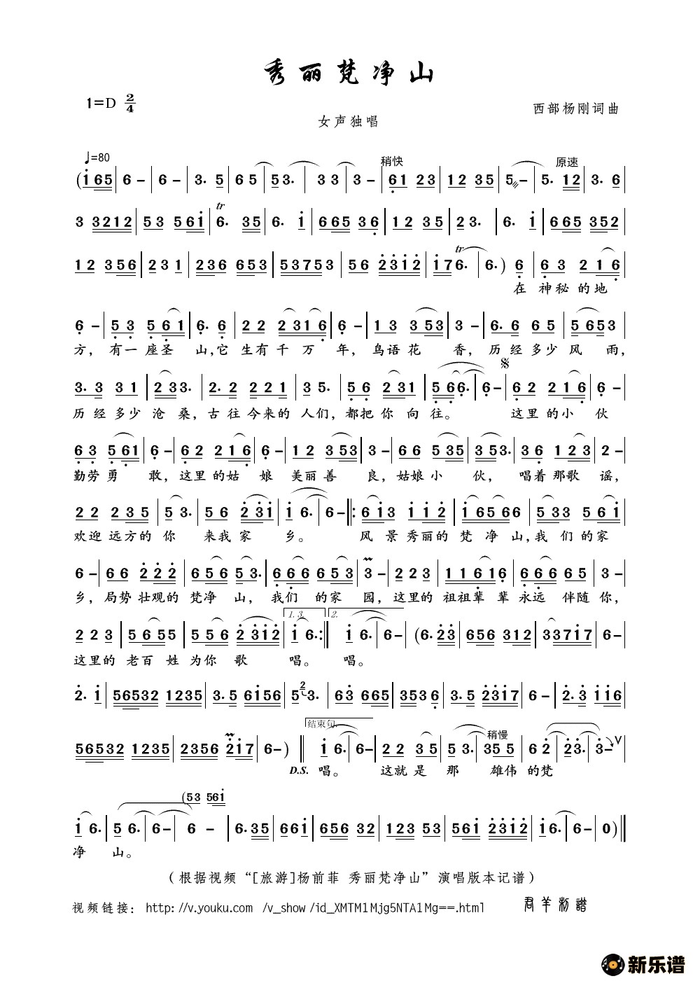 杨前菲演唱的秀丽梵净山歌词,秀丽梵净山简谱.