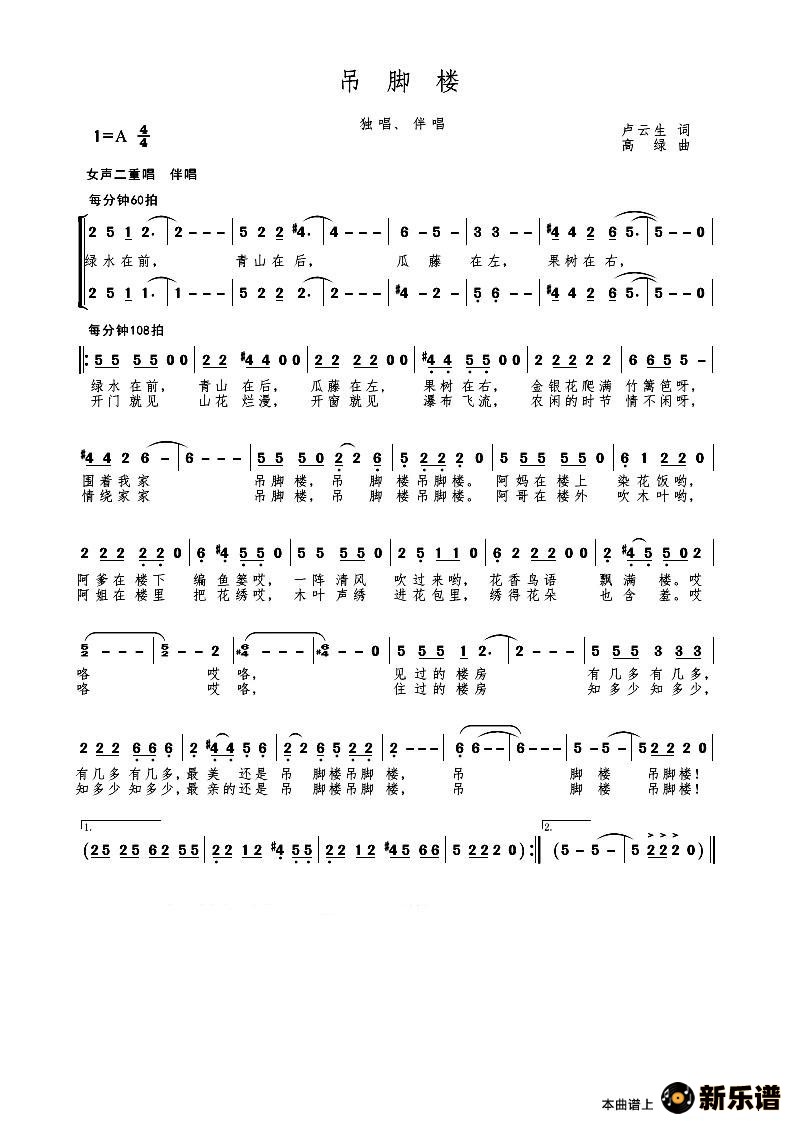 演唱的吊脚楼歌词,吊脚楼简谱.