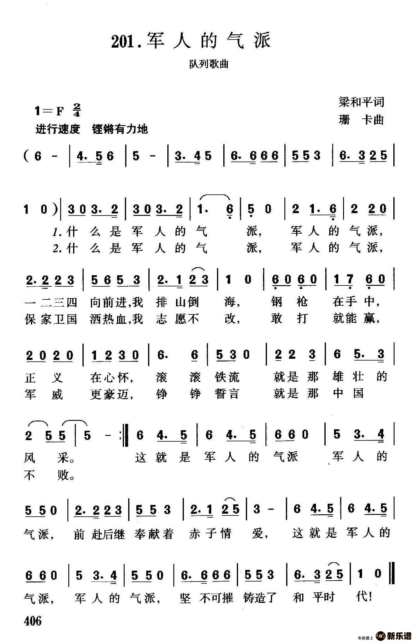 演唱的军人的气派歌词,军人的气派简谱.
