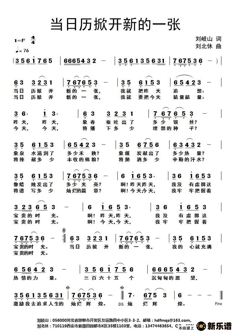 演唱的当日历掀开新的一张歌词,当日历掀开新的一张简谱.