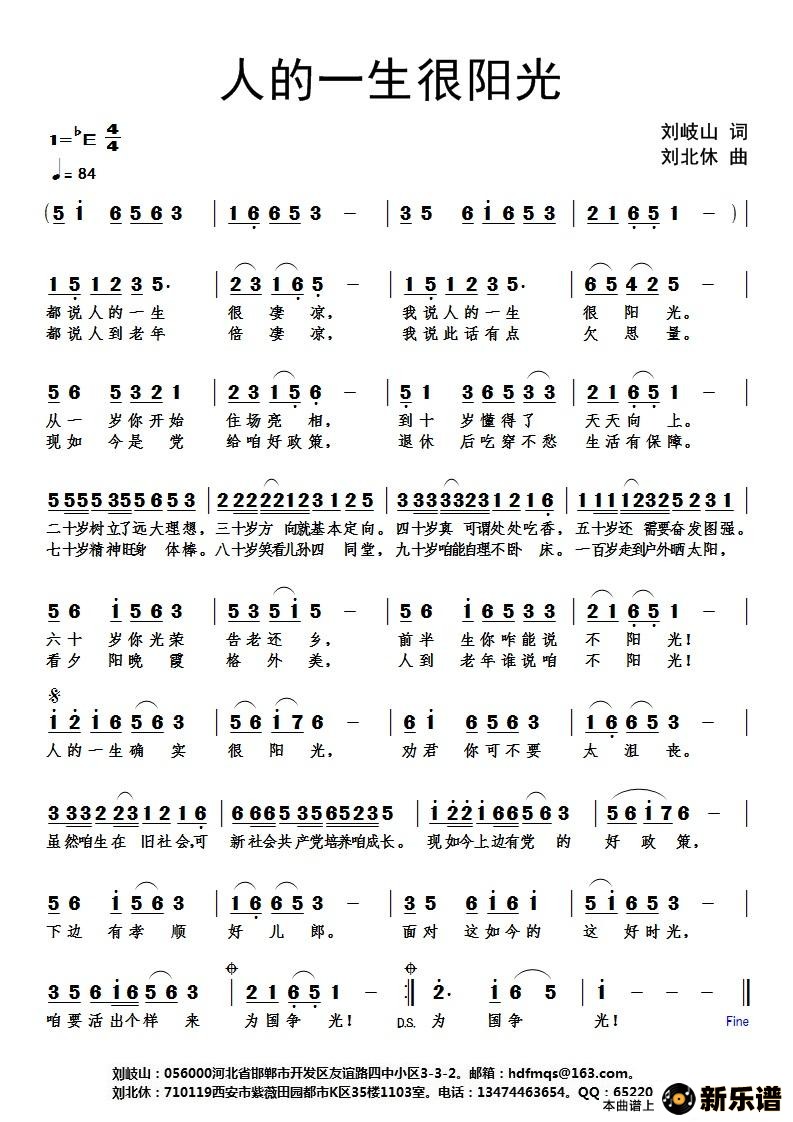 演唱的人的一生很阳光歌词,人的一生很阳光简谱.