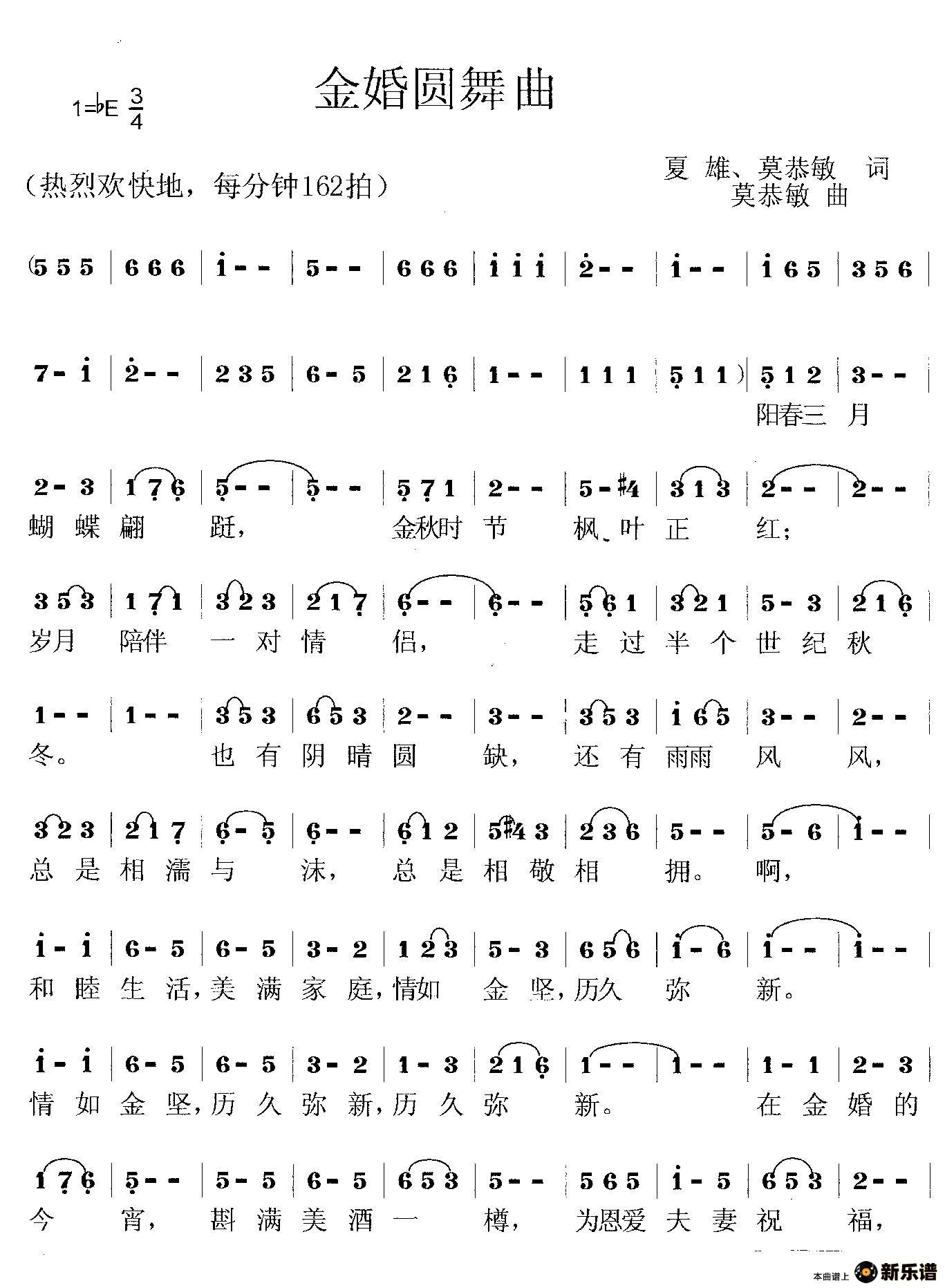 演唱的金婚圆舞曲歌词,金婚圆舞曲简谱.