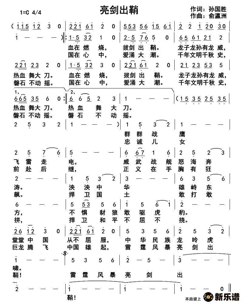 演唱的亮剑出鞘歌词,亮剑出鞘简谱.