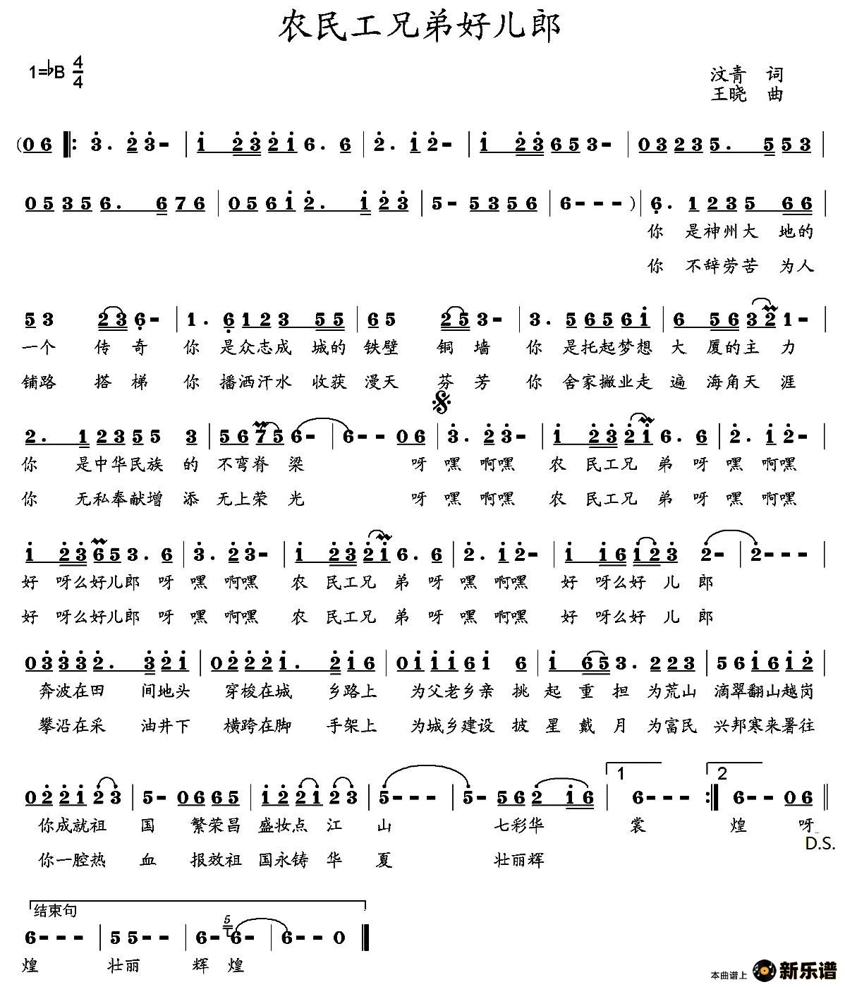 演唱的农民工兄弟好儿郎歌词,农民工兄弟好儿郎简谱.